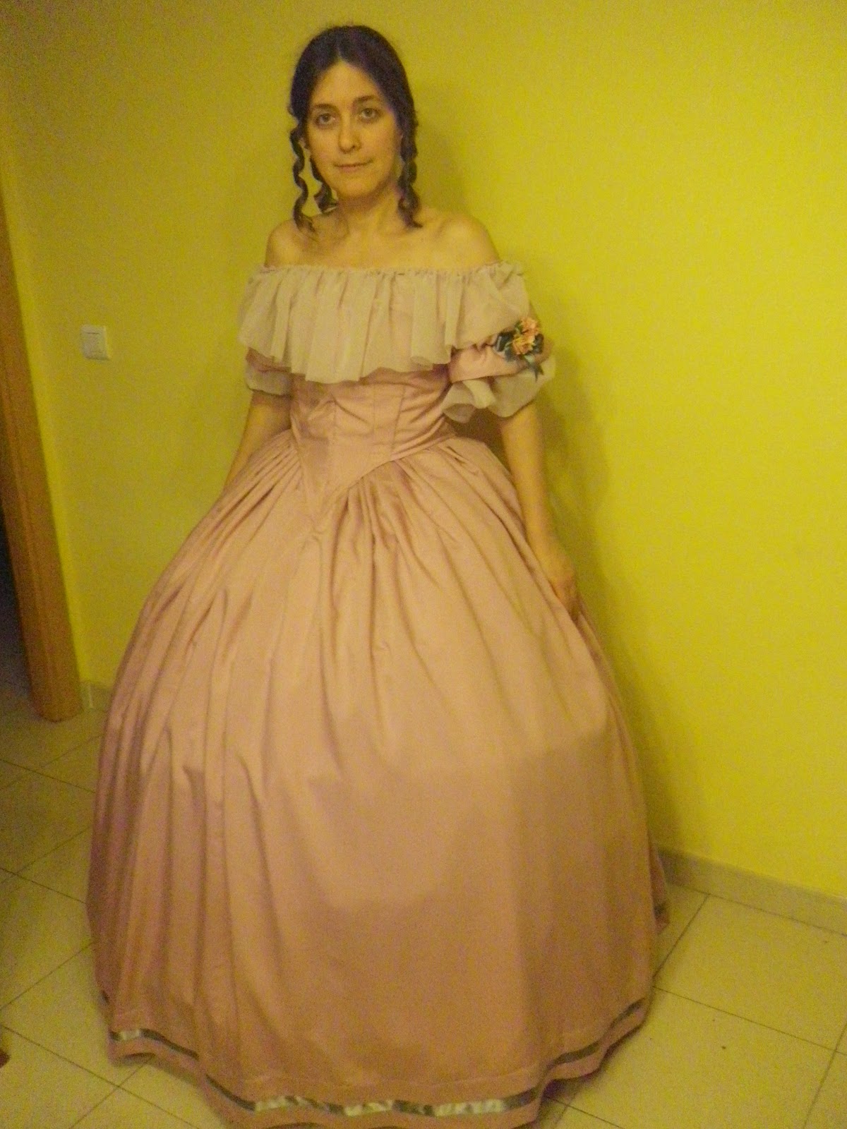 Aquí están las fotos. Menos mal que no se pueden apreciar todos los fallos que tiene el corpiño, pero a ver como los soluciono. Al menos estoy muy contenta con el efecto general.