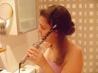 | Detalle del tocado.Yo y mi manía de ponerme el pelo detrás de la oreja |
