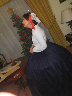 El conjunto me gusta como me ha quedado. Me queda por hacerme la chaquetilla en la misma tela que la falda, pero menos mal que tenía mi socorrida camisa "vintage" para sacarme del paso. En cuando al tocado...bueno, lo hice demasiado deprisa y lo tengo que retocar, pero me dió la imagen que buscaba para el momento. Lo cierto es que disfruto mucho cada vez que me pongo la crinolina, así que seguro que dentro de poco tiempo vuelvo a meterme en ella e inmortalizo el momento :)
