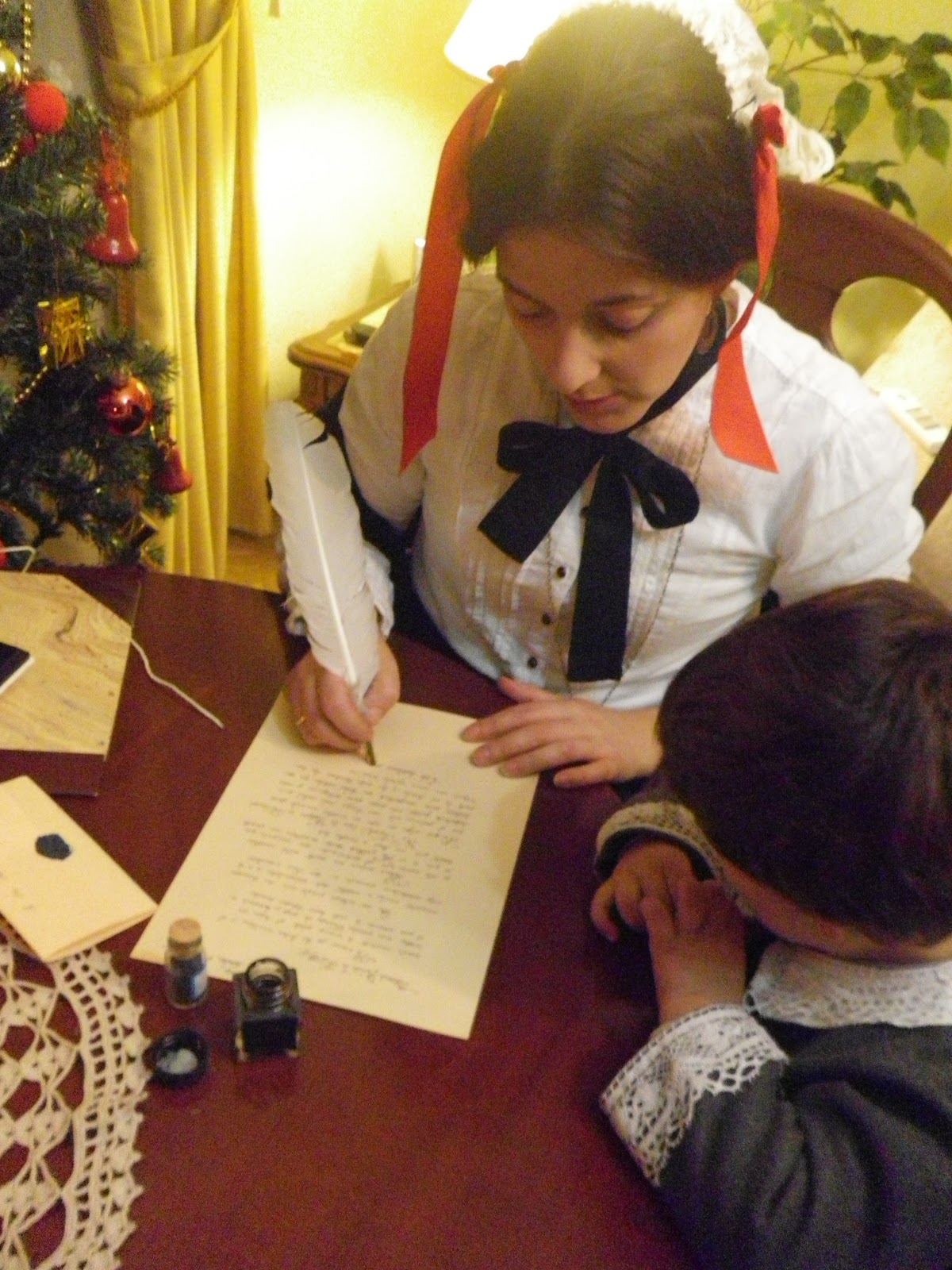 Escribiendo las cartas para la familia y allegados al estilo del siglo XIX