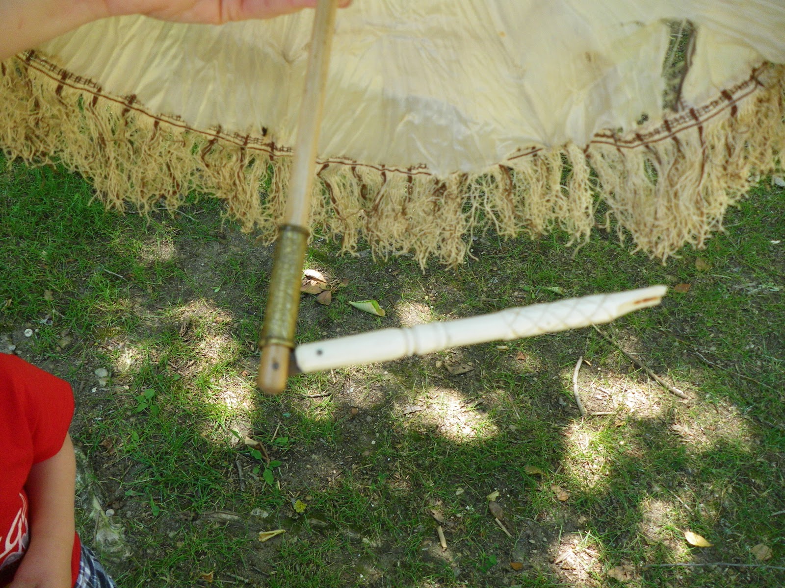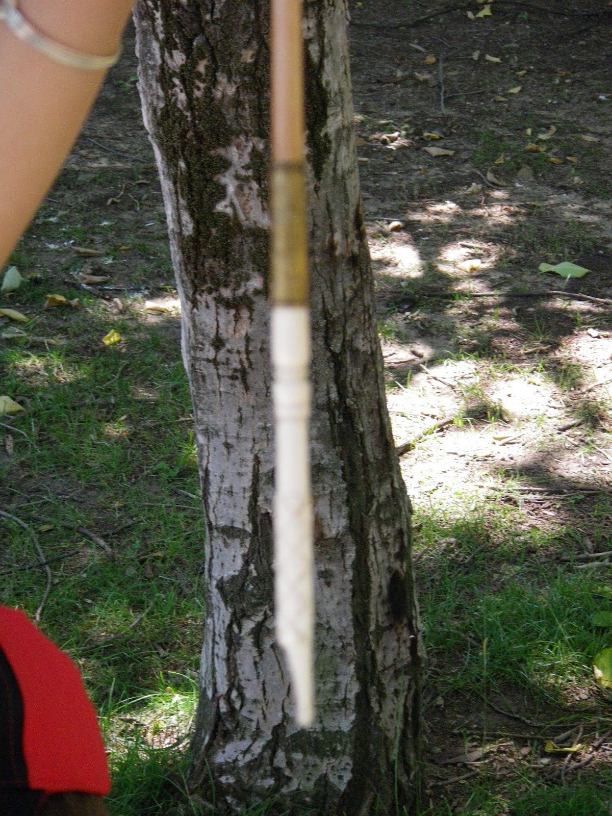 El mango es de marfil, está un poco roto, pero nada que no sea reparable. Esta la usé en el museo del Traje